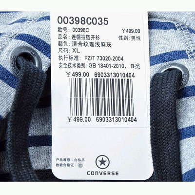 > 匡威男子連帽拉鏈開衫00398C035