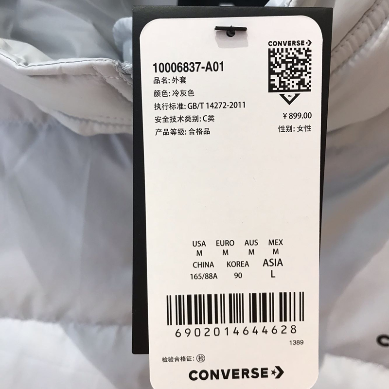匡威10006837-A01-CONVERSE(匡威)Converse Down Fill PufferPURE PLATINUM10006837-A01