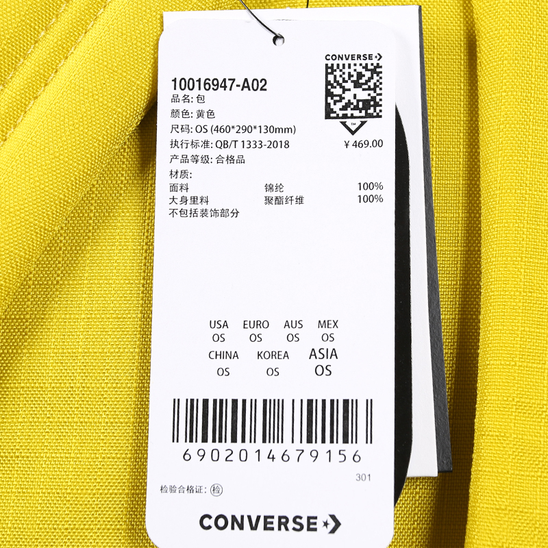匡威10016947-A02-CONVERSE(匡威)CORDURA Street 22 BackpackBold Citron/Black10016947-A02