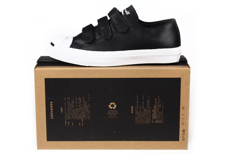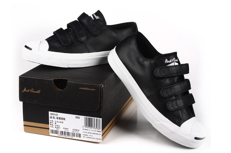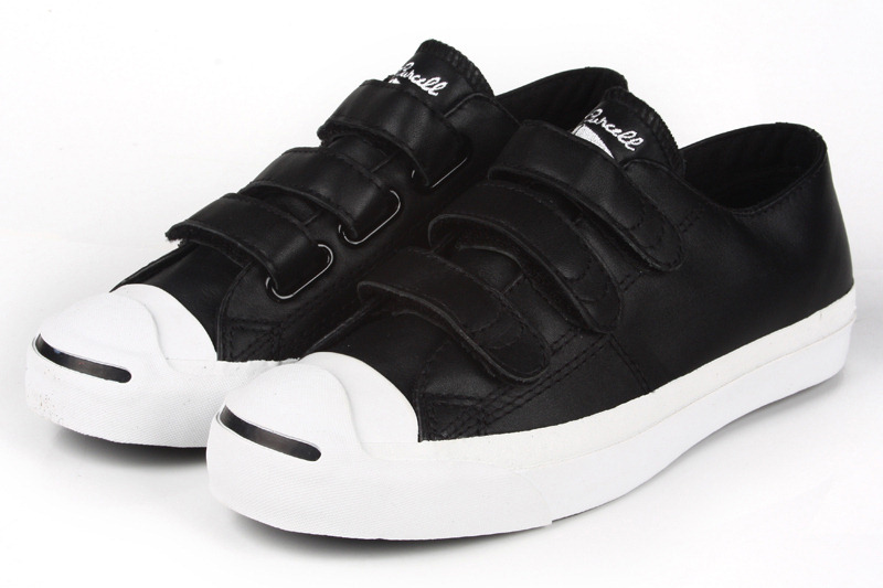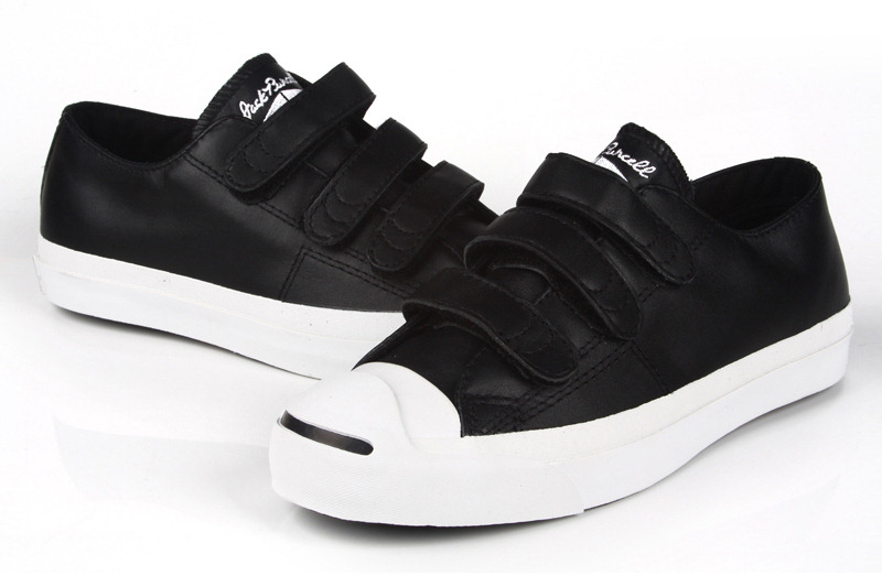 匡威Jack Purcell黑低幫魔術貼牛皮中性鞋