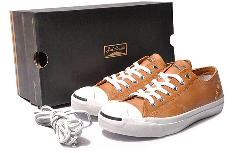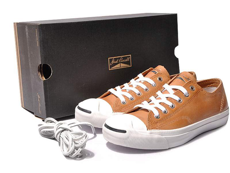 匡威Jack Purcell褐色/黃色/白色低幫綁帶牛皮中性鞋