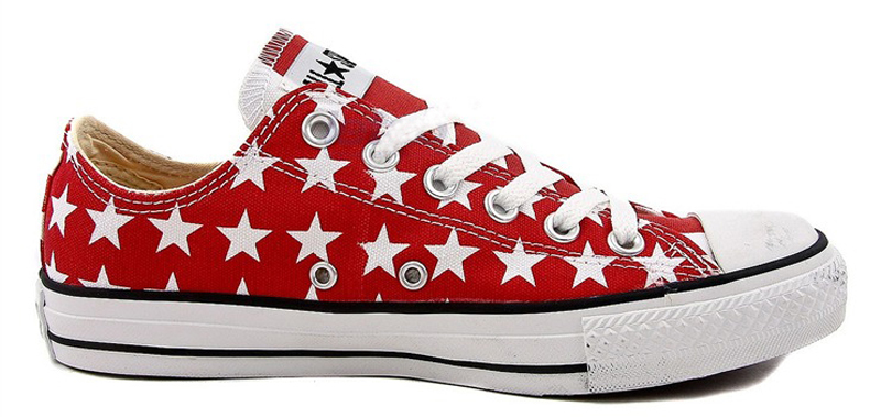 匡威122788-鞋身為國旗條紋,鞋舌印刷五角星.以美國國旗為設計理念,精神抖擻,也流露出淡淡的懷舊情結.