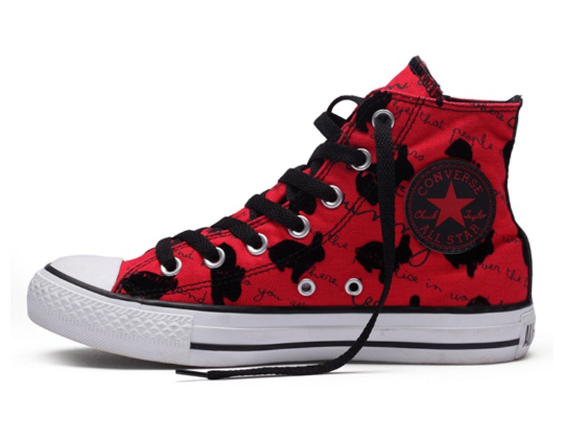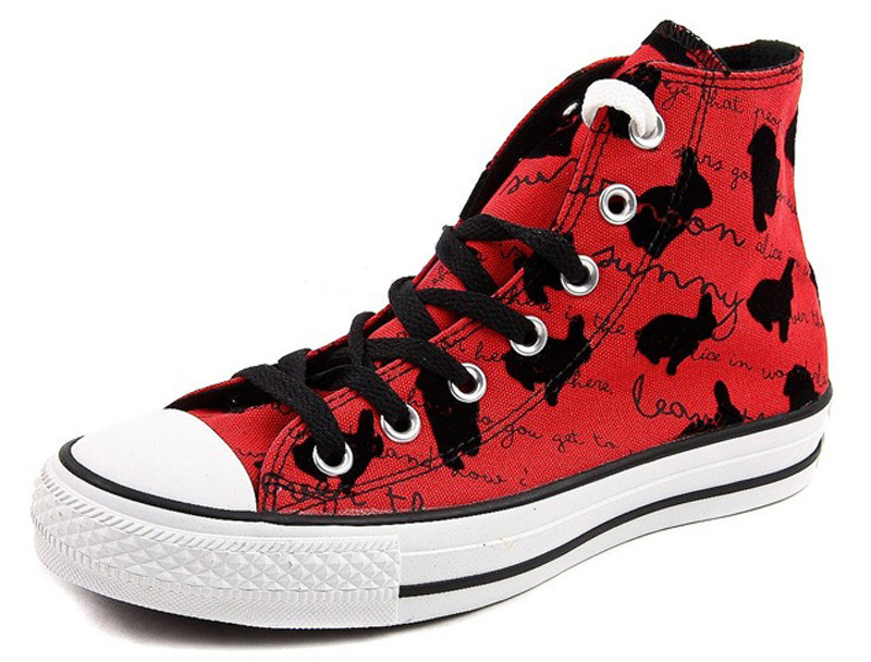 匡威122872-dg-植絨印刷的效果,選自愛麗絲夢游仙境的旁白,可愛的小兔子讓人內心愉悅,紅黑的經典搭配是所有年輕人的心動之選.