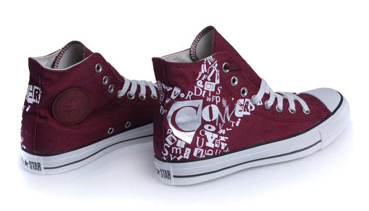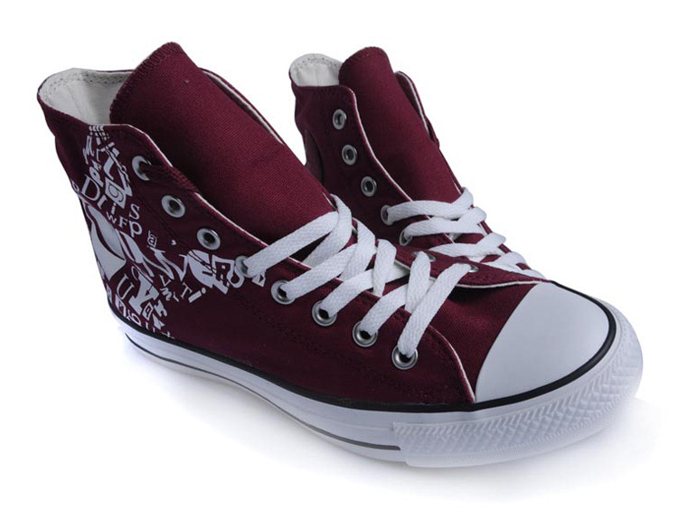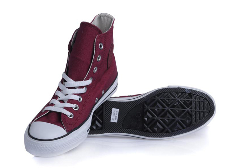 匡威All Star梅紅色高幫綁帶帆布中性鞋