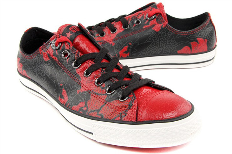匡威All Star紅/黑低幫綁帶牛皮中性鞋