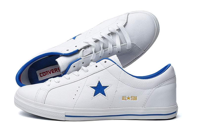 匡威One Star白/藍低幫綁帶牛皮中性鞋