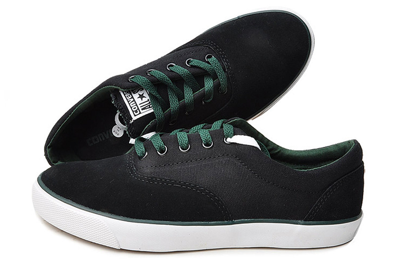 匡威Skate黑/深綠色低幫綁帶牛皮中性鞋