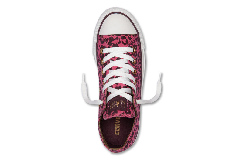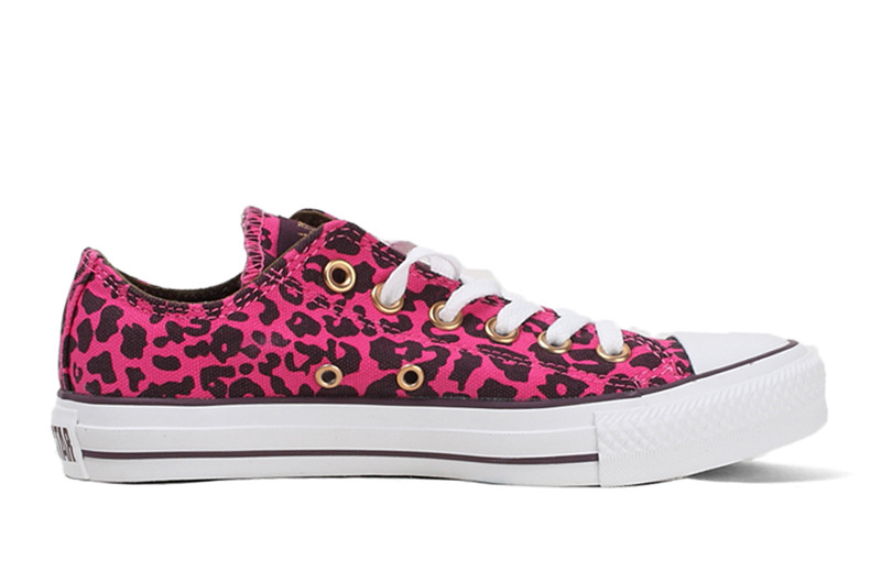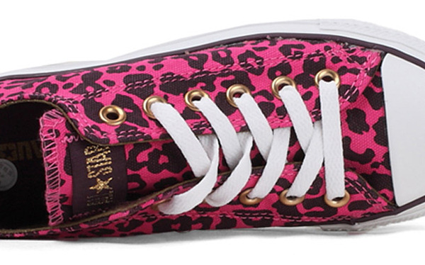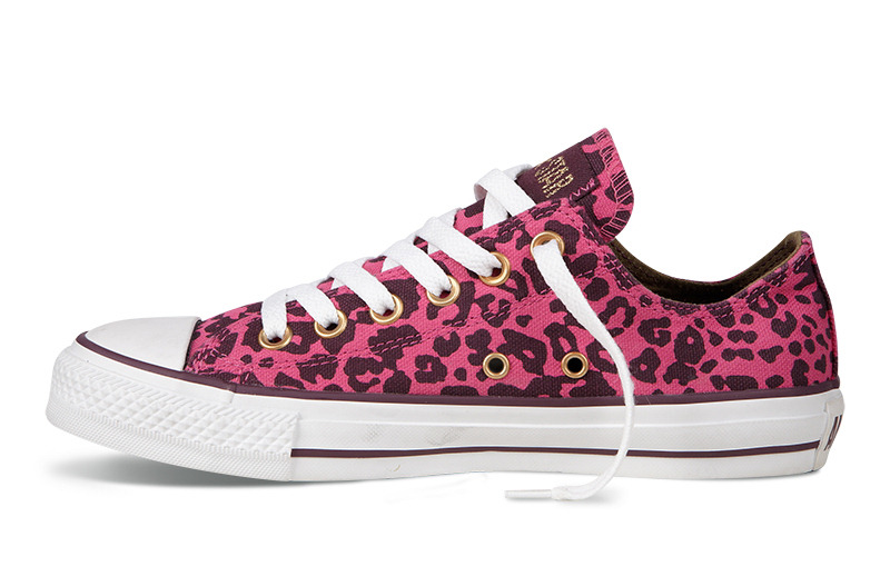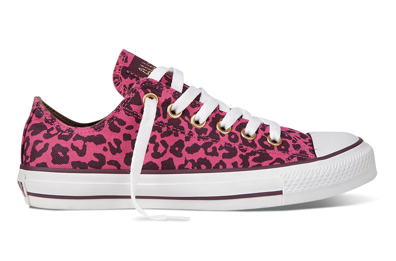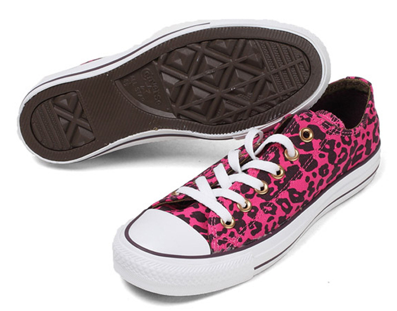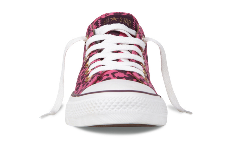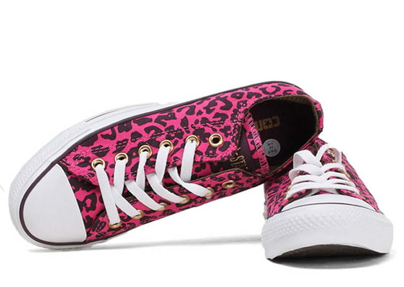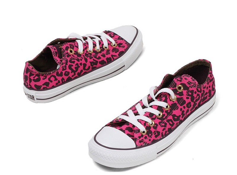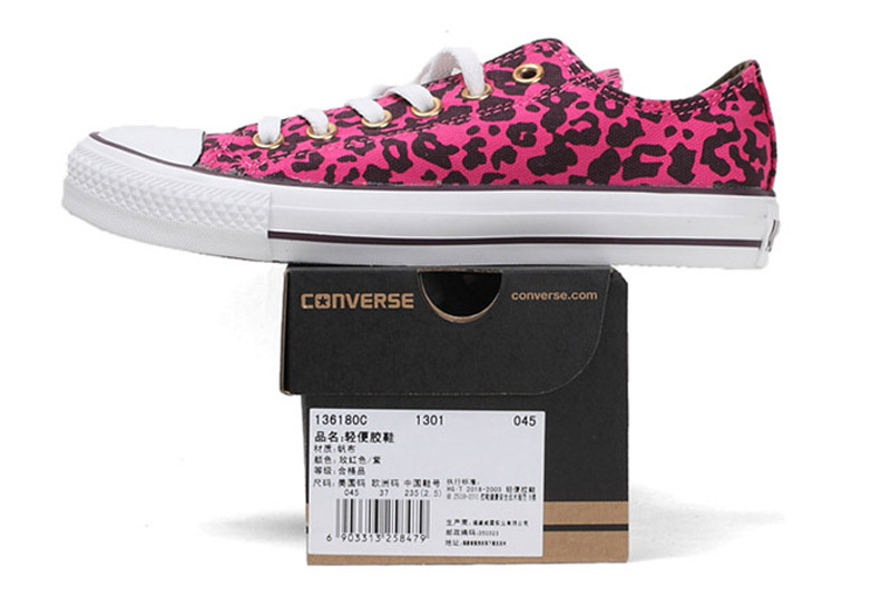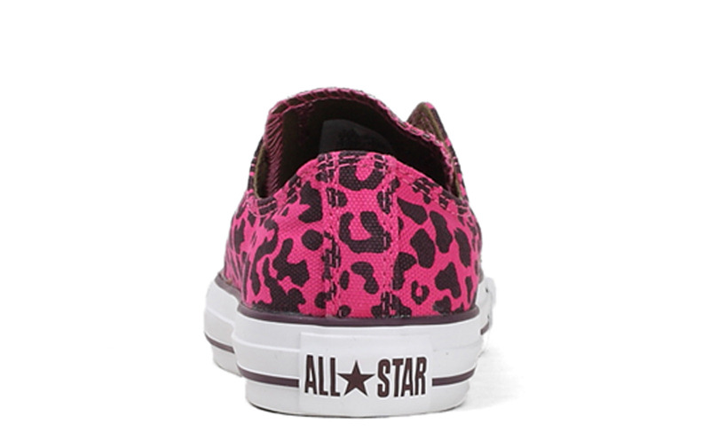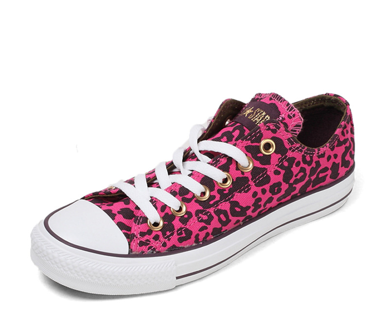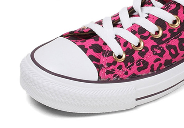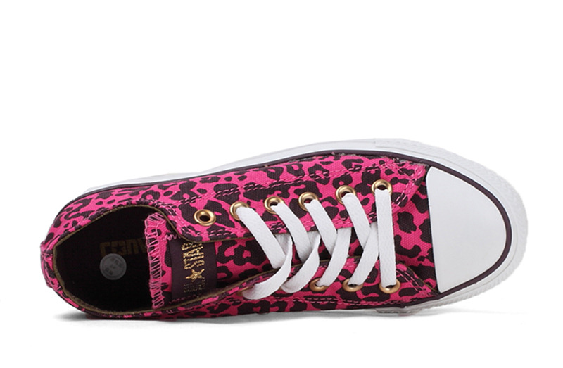 匡威136180-2013年新款136180大面積的豹紋圖案充滿著波普感覺,和經典鞋款搭配,加上濃烈的玫紅色和紫色搭配,野性十足而不失時尚風潮。帆布,玫紅色/紫