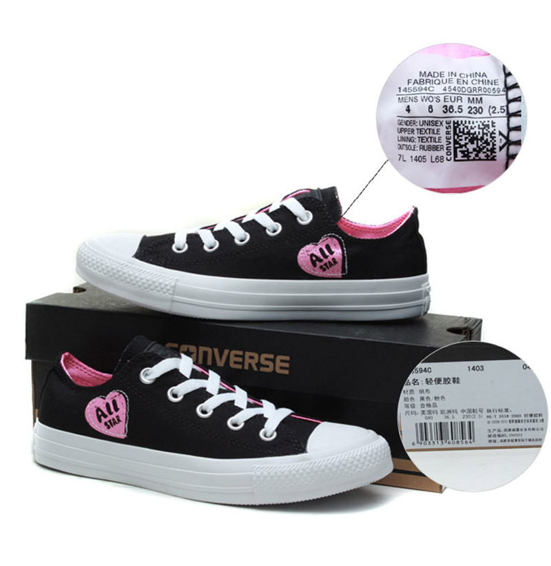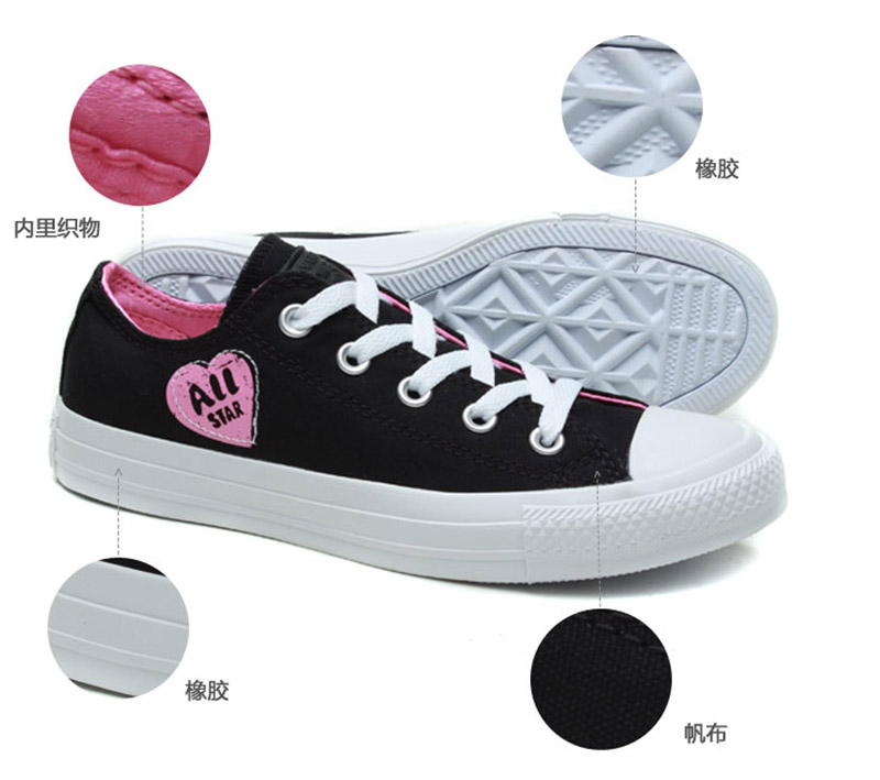 匡威輕便膠鞋黑色/粉色低幫綁帶帆布中性鞋