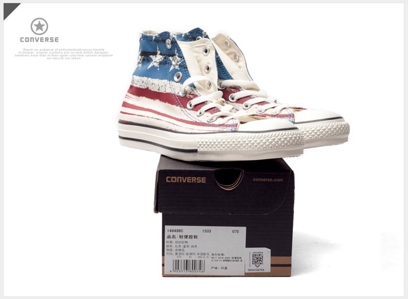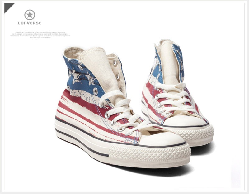匡威CONVERSE ALL STAR-Seasonal紅色/藍色/白色高幫綁帶帆布中性鞋