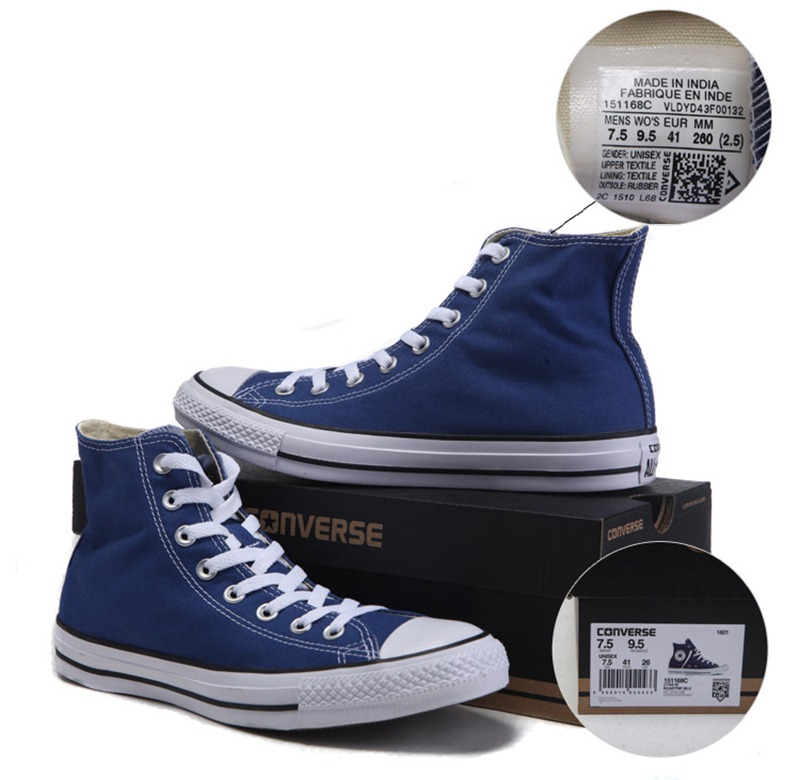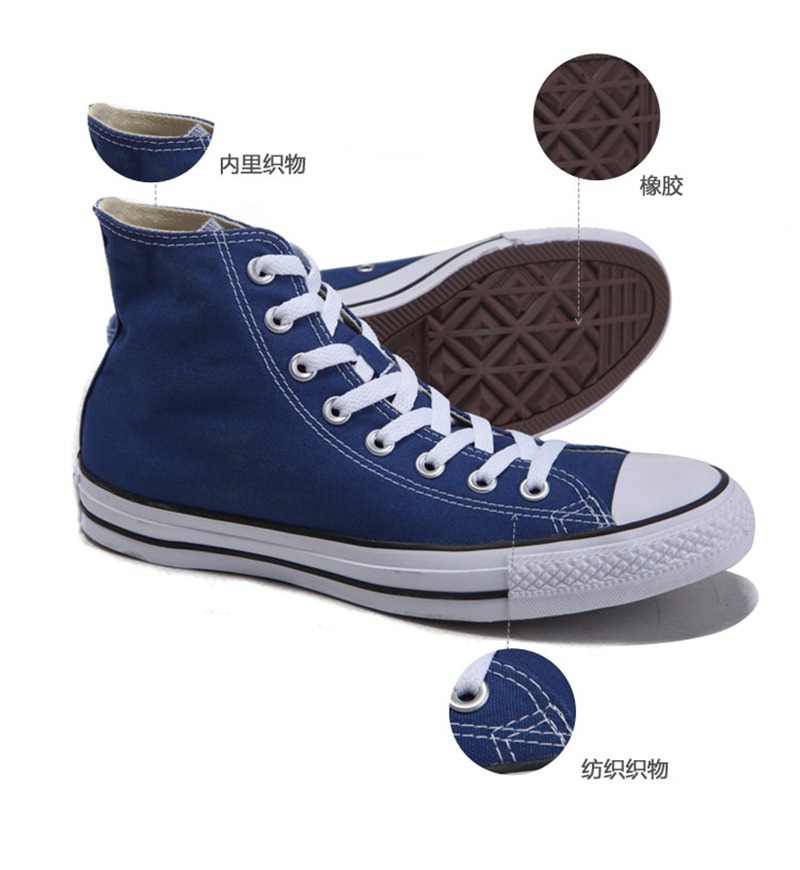 匡威Chuck Taylor藍色/白色/黑色高幫綁帶帆布中性鞋