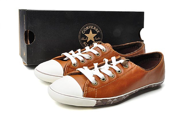 匡威Chuck Taylor棕色/棕灰色/灰/巧克力色低幫綁帶牛皮女鞋