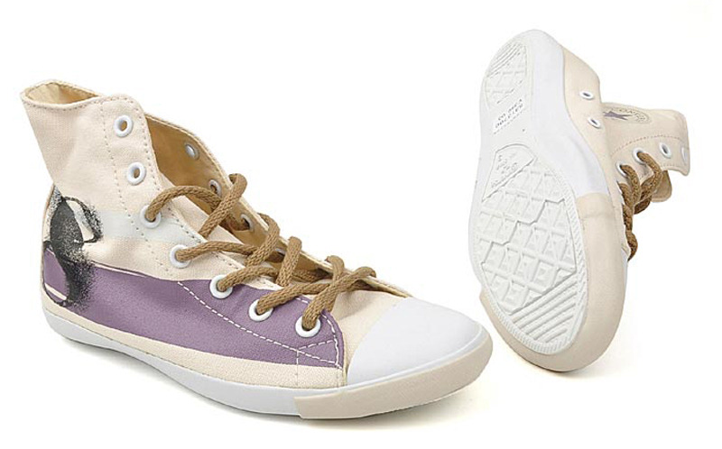 匡威All Star米色/深紫色/黑高幫綁帶帆布女鞋