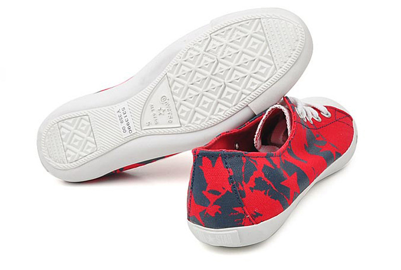 匡威All Star紅/海軍藍色低幫綁帶帆布女鞋