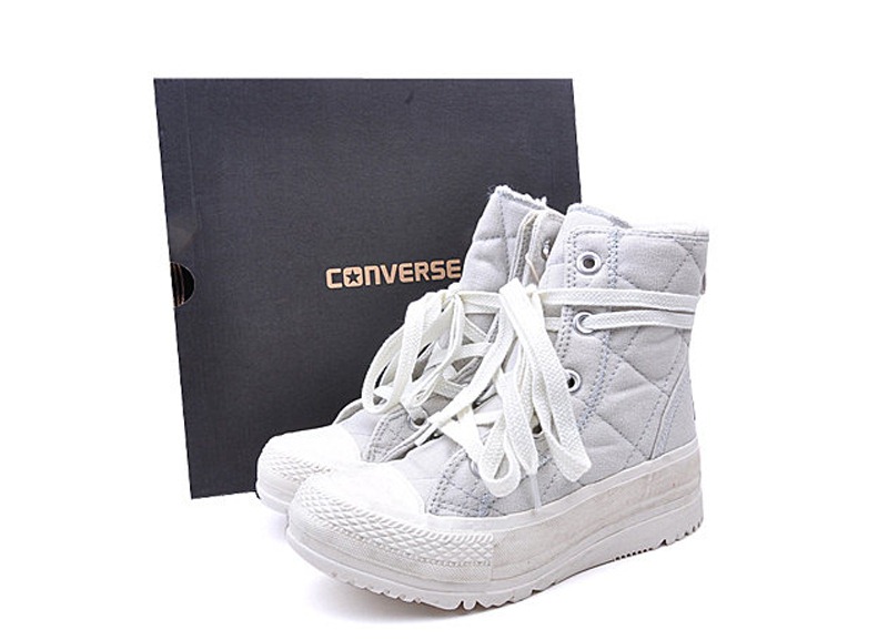 匡威532324-2013年新款532324帆布面料與特別的鞋繩設計,讓靴子有了更多的系法,既襯托了女生的俏皮可愛,又在這個冬天給人帶來無限暖意。中幫,帆布,云灰色