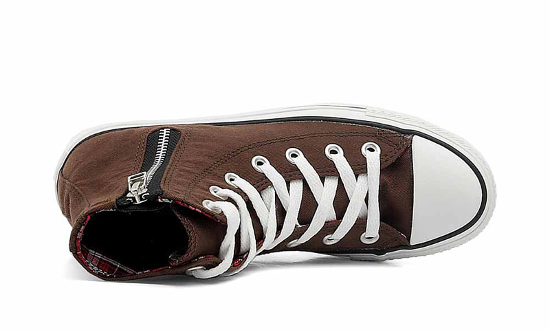 匡威534300-2013年新款534300以機車夾克為概念,配以與眾不同的內里,拉鏈的設計不僅搖滾范十足,更是方便穿脫,獨特的拉鏈配色,更亮眼。高幫,帆布,深咖啡色