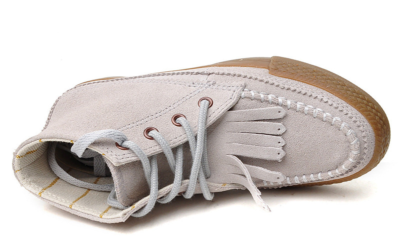 - 簡介:匡威535023-2013年新款535023經典的BOOT鞋款搭配時尚的流蘇,讓復古風展現的淋漓盡致,加厚的毛料內里柔軟溫暖,是冬日里不可或缺的一款。中幫,牛皮二層革,淺灰色 暫無庫存,可加微信客服咨詢:CONSLVIE-COM