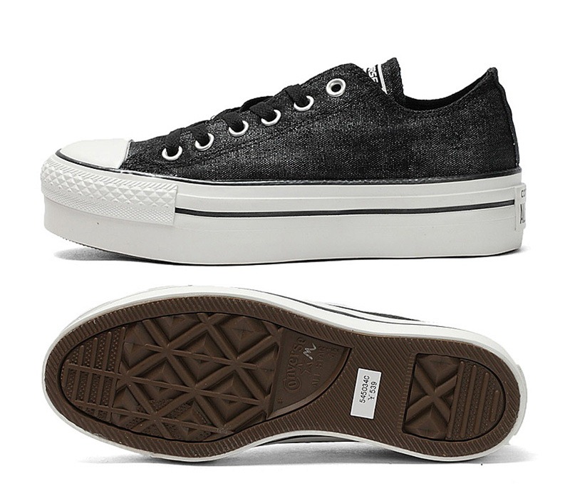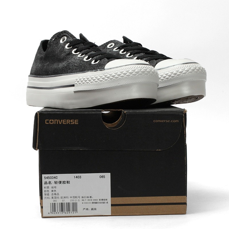 匡威545034-能輕松增高的松糕厚底設計,引領秋日街頭休閑潮流。帶著柔和光澤感的帆布面料結實耐穿,鞋頭等橡膠部分帶少量污跡,以做舊細節凸顯個性。低幫,帆布。